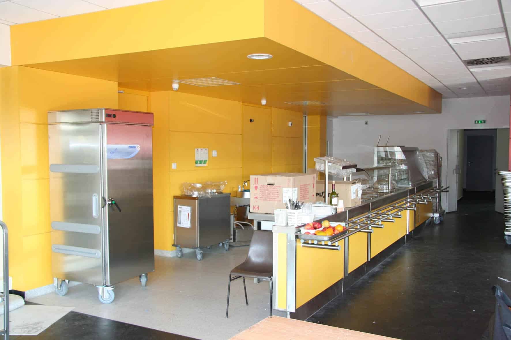Aménagement d’un restaurant self pour 60 couverts avec extension à 80 couverts et d’une salle de réunion mise à disposition pour les entreprises environnantes.