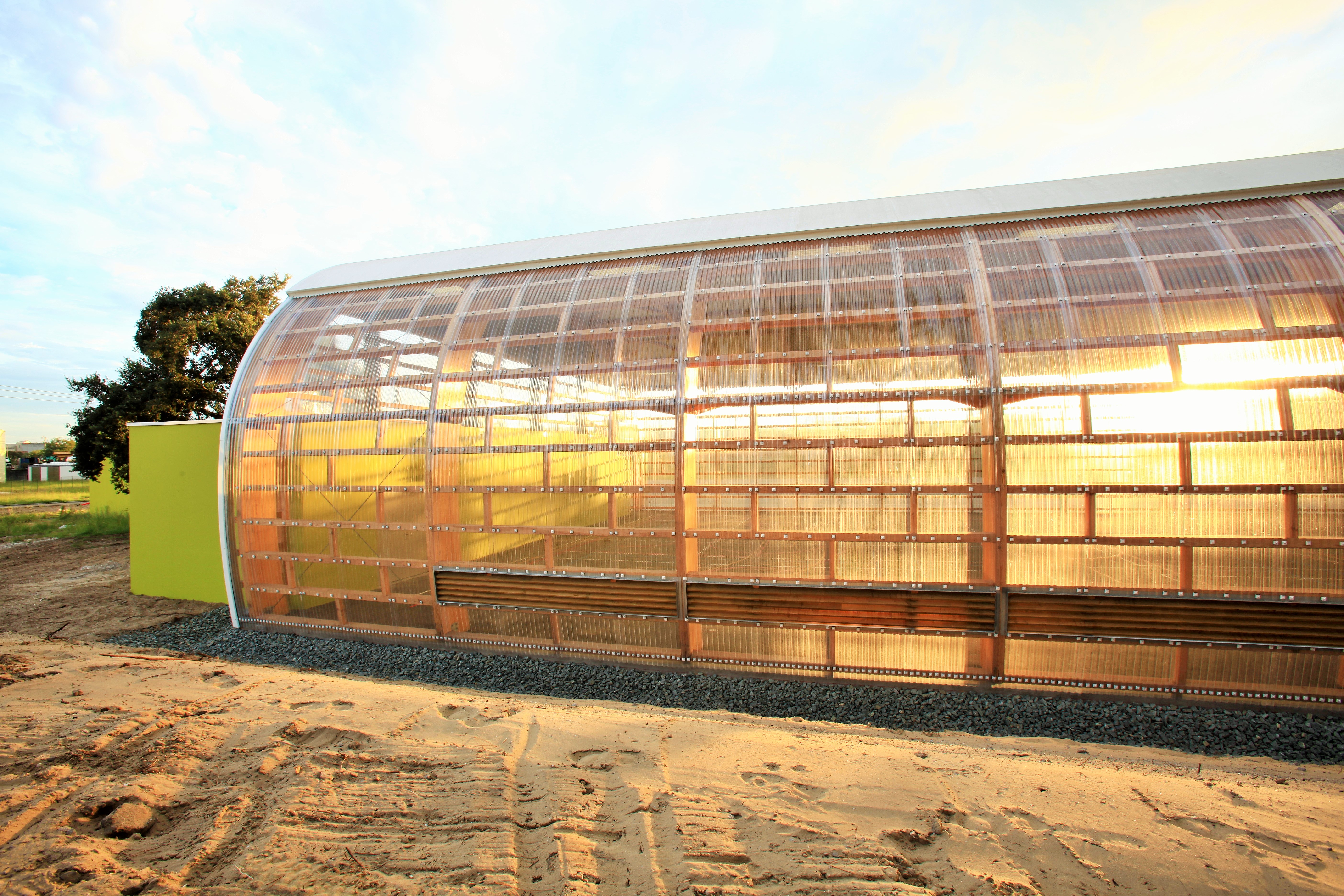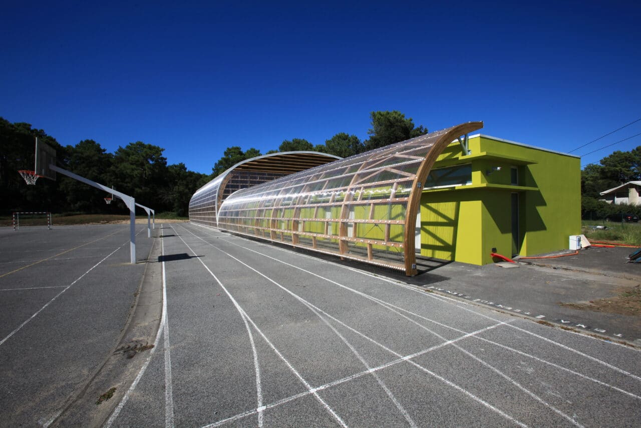 Les équipements sportifs existants devaient être complétés par une halle sportive couverte, protégée de la pluie et du vent et non chauffée. Bioclimatique, elle comprend une aire multisports avec des terrains de basket, handball, volleyball et badminton.